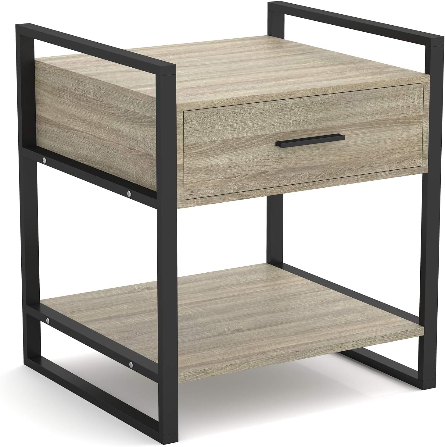 Safdie 81044 Z 05 End Living Room Entryway Night Stand Side Bedside Corner Accent Table Dark Taupe Black Metal Wood End Tables