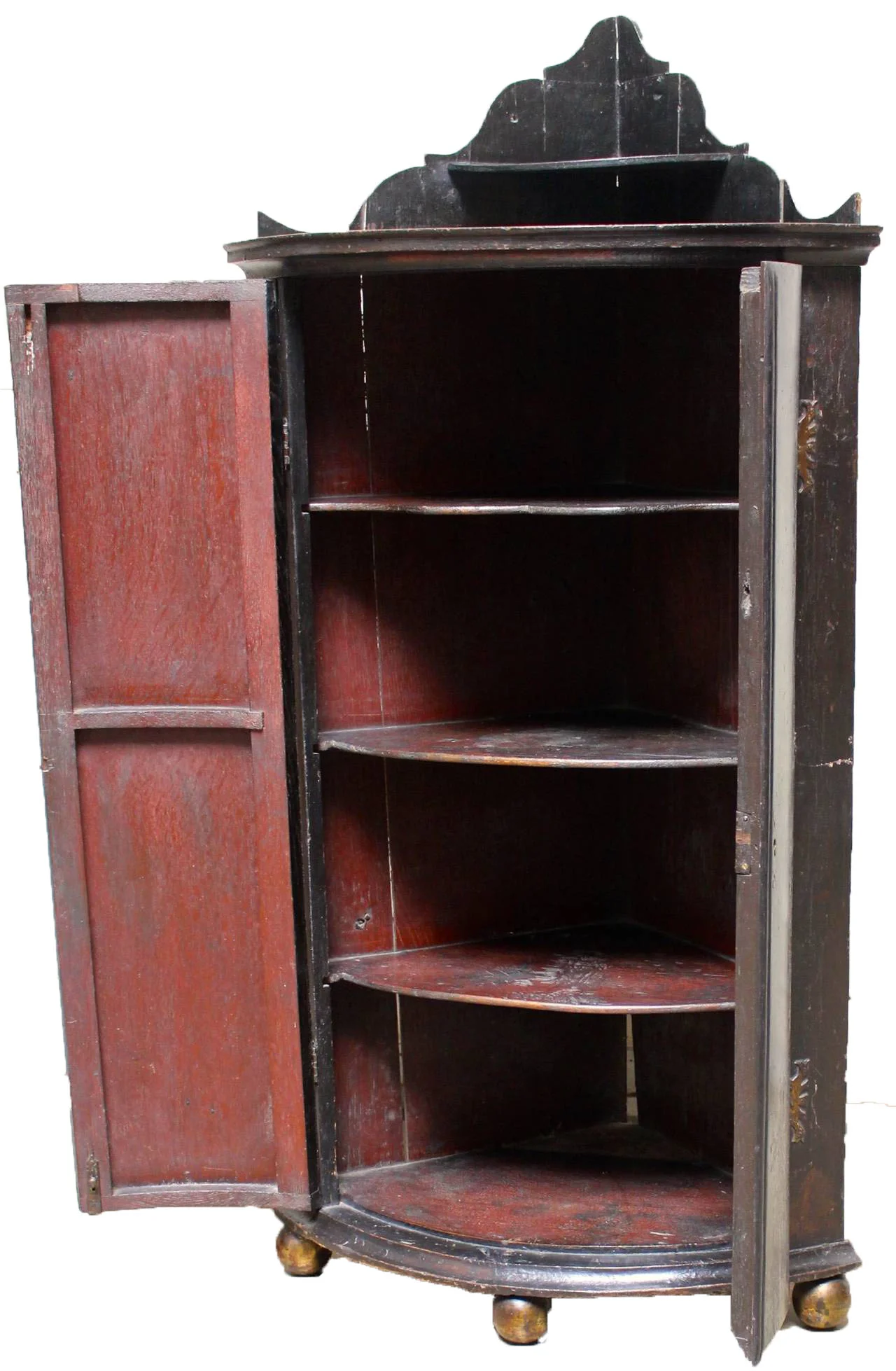 European Painted Bow Front Corner Cabinet Black Tulip Antiques