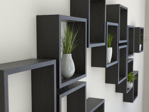 Black Oak Square Wall Shelf In Solid Oak Black Oak Cube Etsy