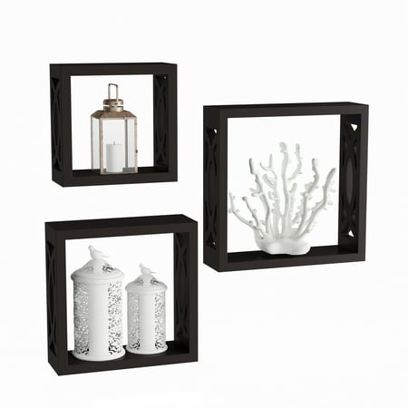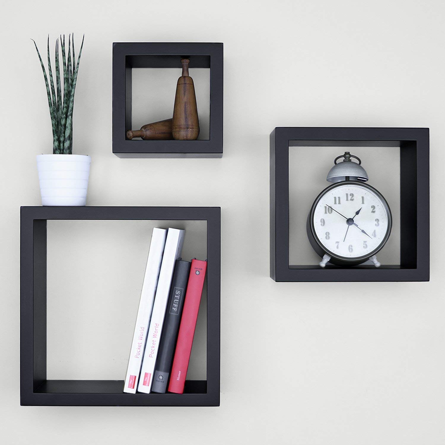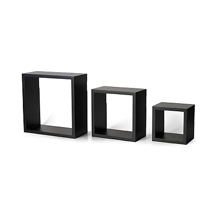 Melannco Square Wood Shelves Set Of 3 Black Amazon In Electronics