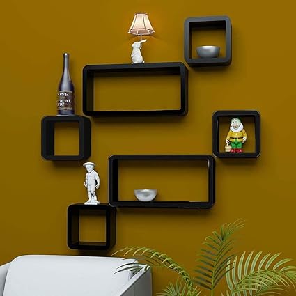 Buy Now Cube Shape Wooden Wall Shelves Black Yellow