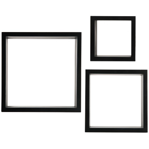 Set Of 3 Floating Square Wall Shelves Nested Cubes Black Gallery