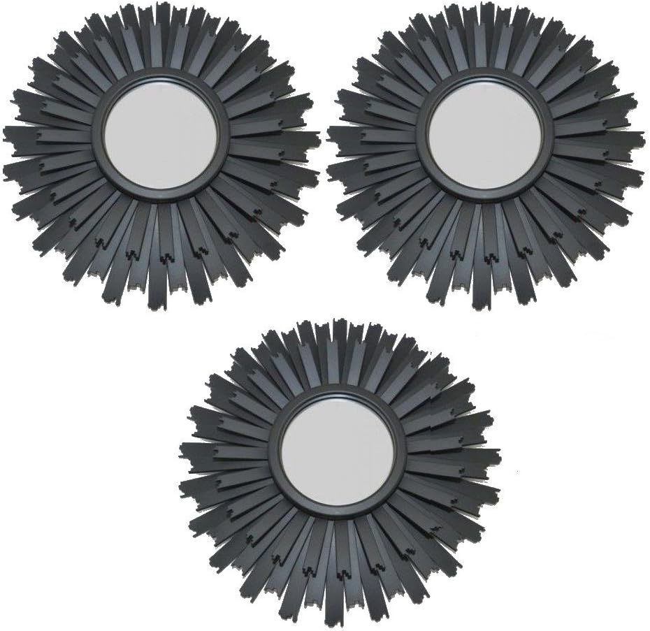 Set Of 3 Flower Starburst Inspired Matte Black Decorative Round Mirror Simply Home Life