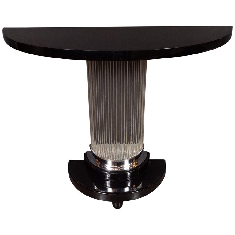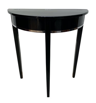 Art Deco Demi Lune Console Table Black Piano Lacquer On Oak