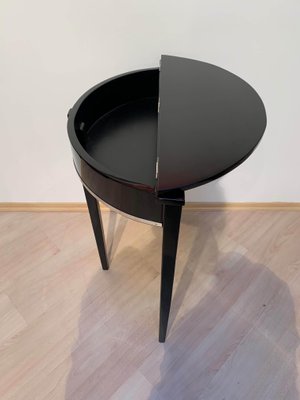 Art Deco French Black Piano Lacquer And Oak Demi Lune Console