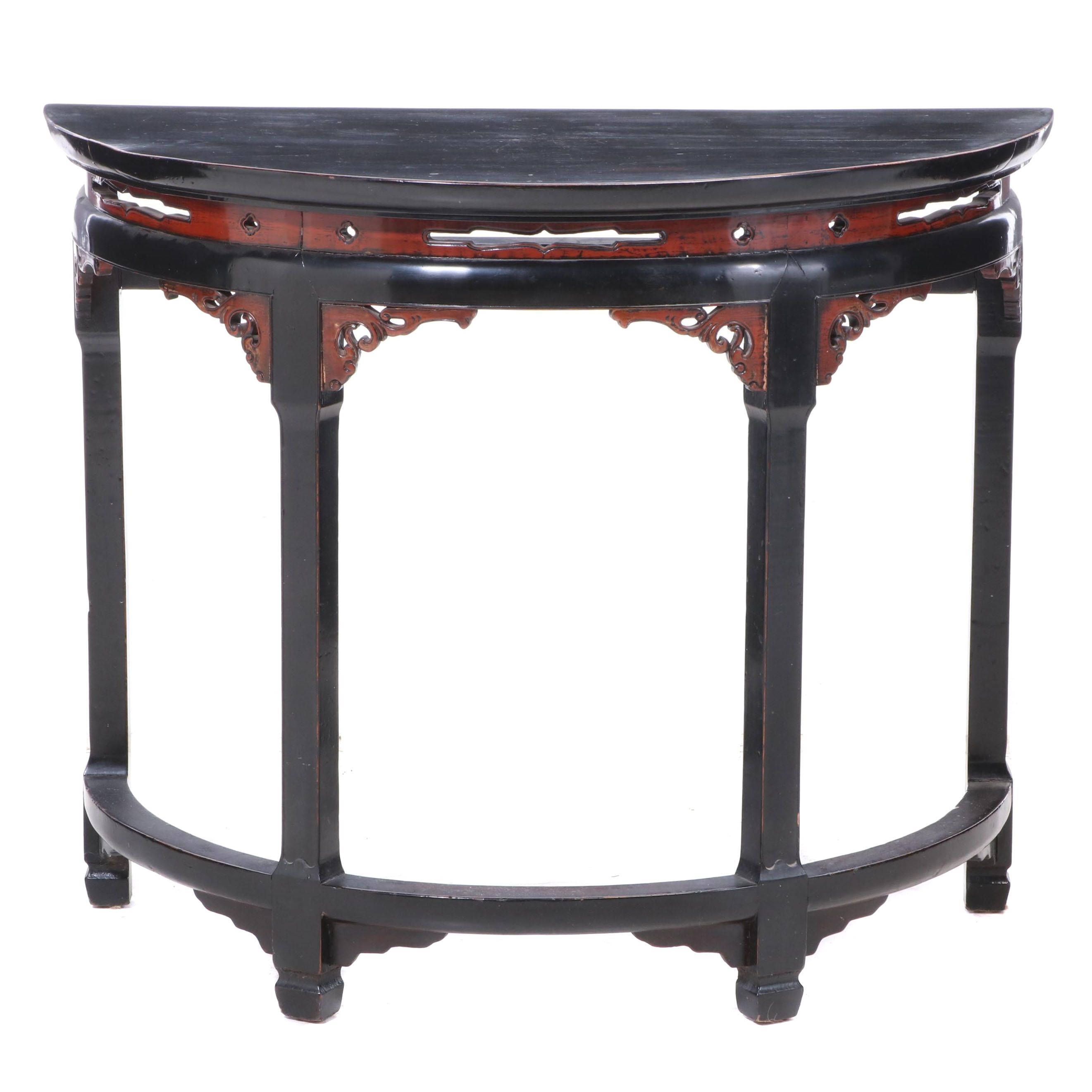 Chinese Black And Red Lacquered Demilune Console Table Ebth