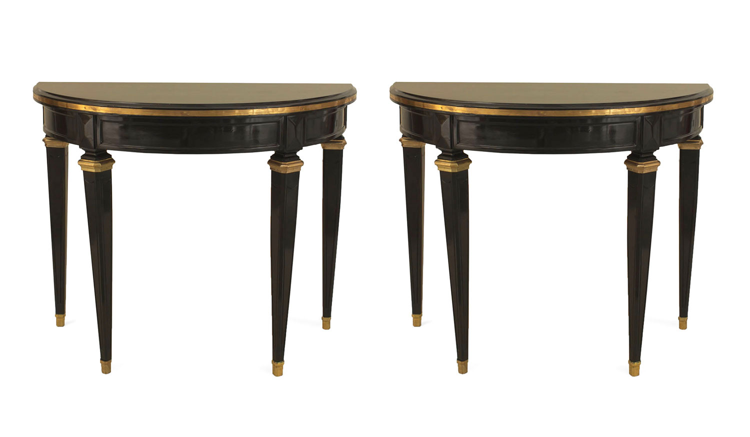 Pair Of Demi Lune Half Moon Console Tables In Piano Black Lacquer