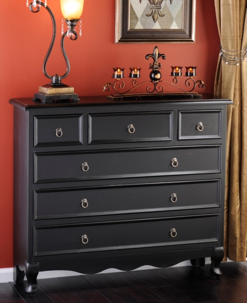 5 5 Ft Wide Distressed Black French 6 Drawer Vanity Chest Dresser