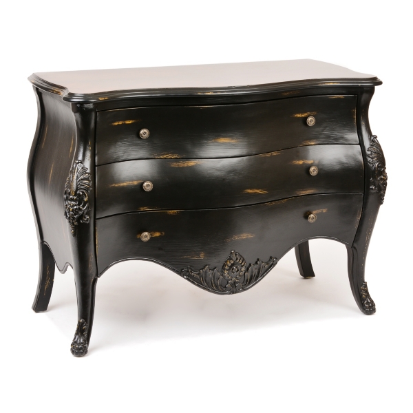 Distressed Black Curved 3 Drawer Chest Kirklands