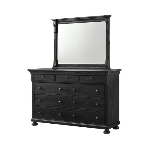 Henrietta Solid Wood Nine Drawer Dresser Mirror Distressed Black