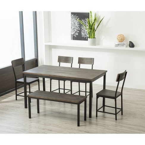 Milton Greens Stars 7816 6pc 6 Pc Winston Porter Salma Ash Black Distressed Finish Wood Dining Table Set With Bench