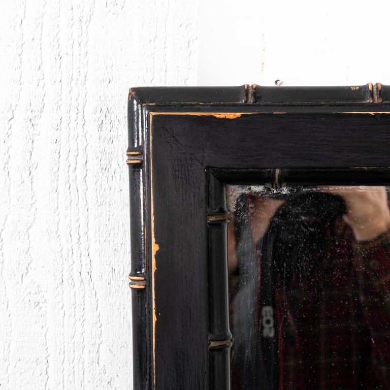 Black Painted Distressed Faux Bamboo Mirror At 1stdibs