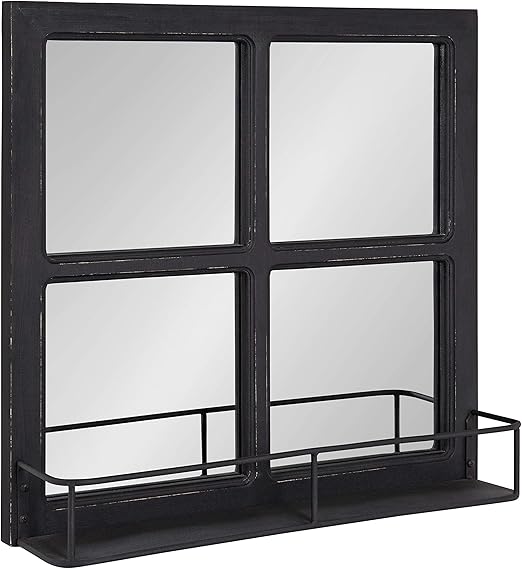 Industrial Style Wall Mirror Storage Shelf Black Distressed Metal