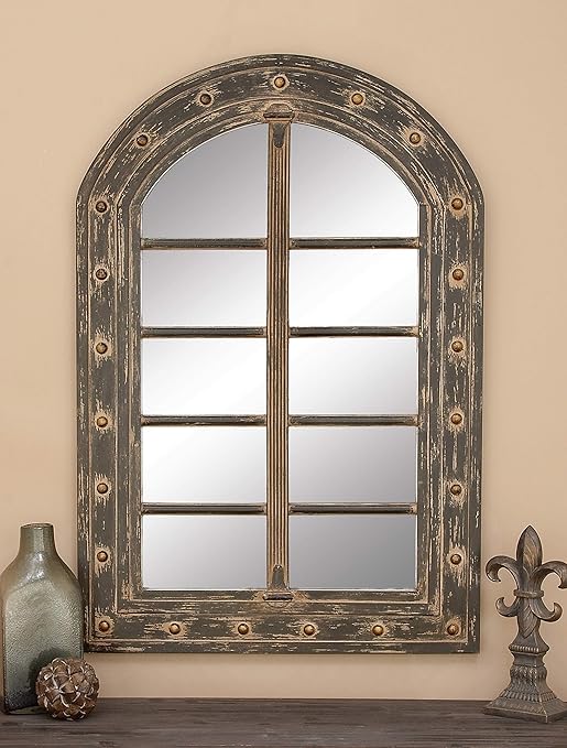 Amazon Com Deco 79 Rustic Wooden Arched Window Framed Wall Mirror