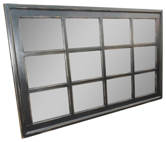 Black Distressed Mirror 12 Windowpane Mirror Mantel Mirror Etsy