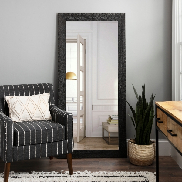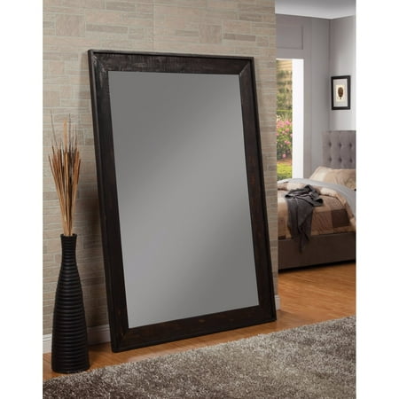 Distressed Floor Mirror With Wooden Frame Black Walmart Com