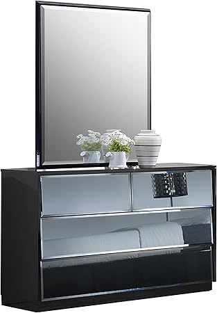 Bedroom Furniture Bonita Dresser And Mirror Black Mirrored