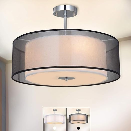 Hnht Ceiling Light Modern Fabric Pendant Light Shade Large Black
