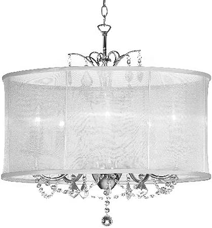Ashford Classics Lighting White Drum Shade Hanging Crystal