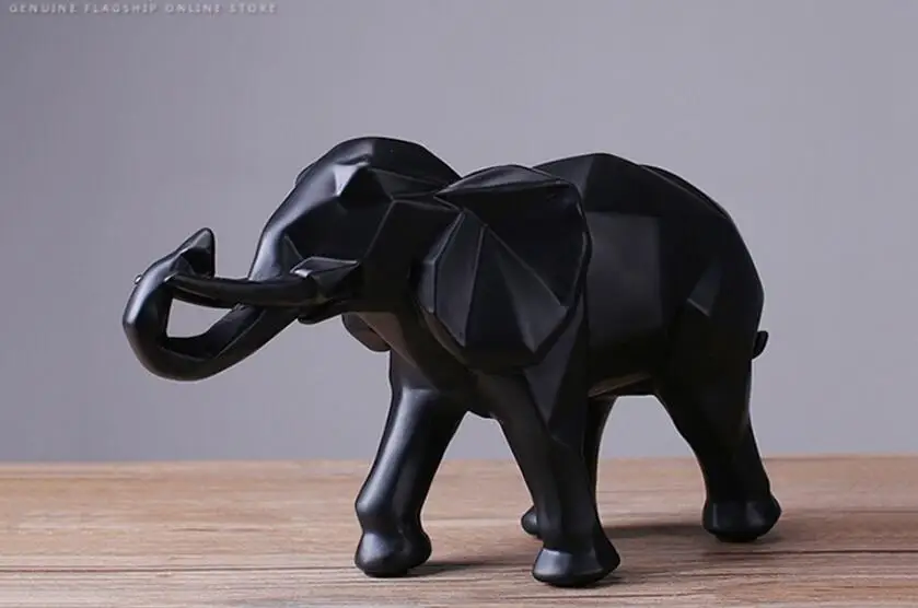 Modern Abstract Black Elephant Statue Resin Ornaments Home Decor