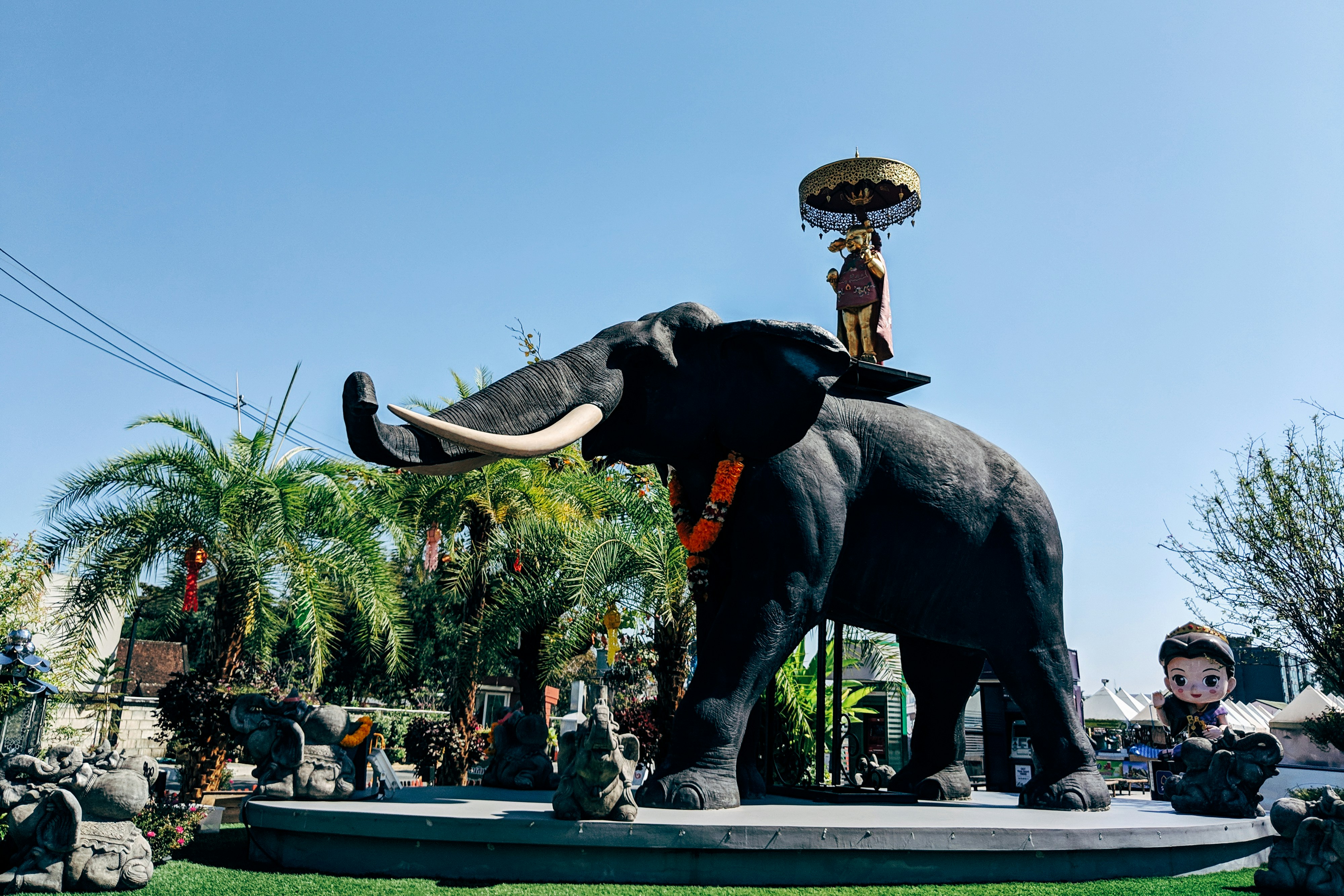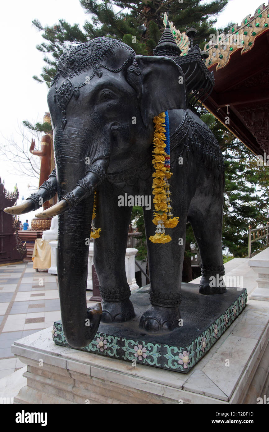 Chiang Mai Thailand Statue Of Black Elephant With String Of