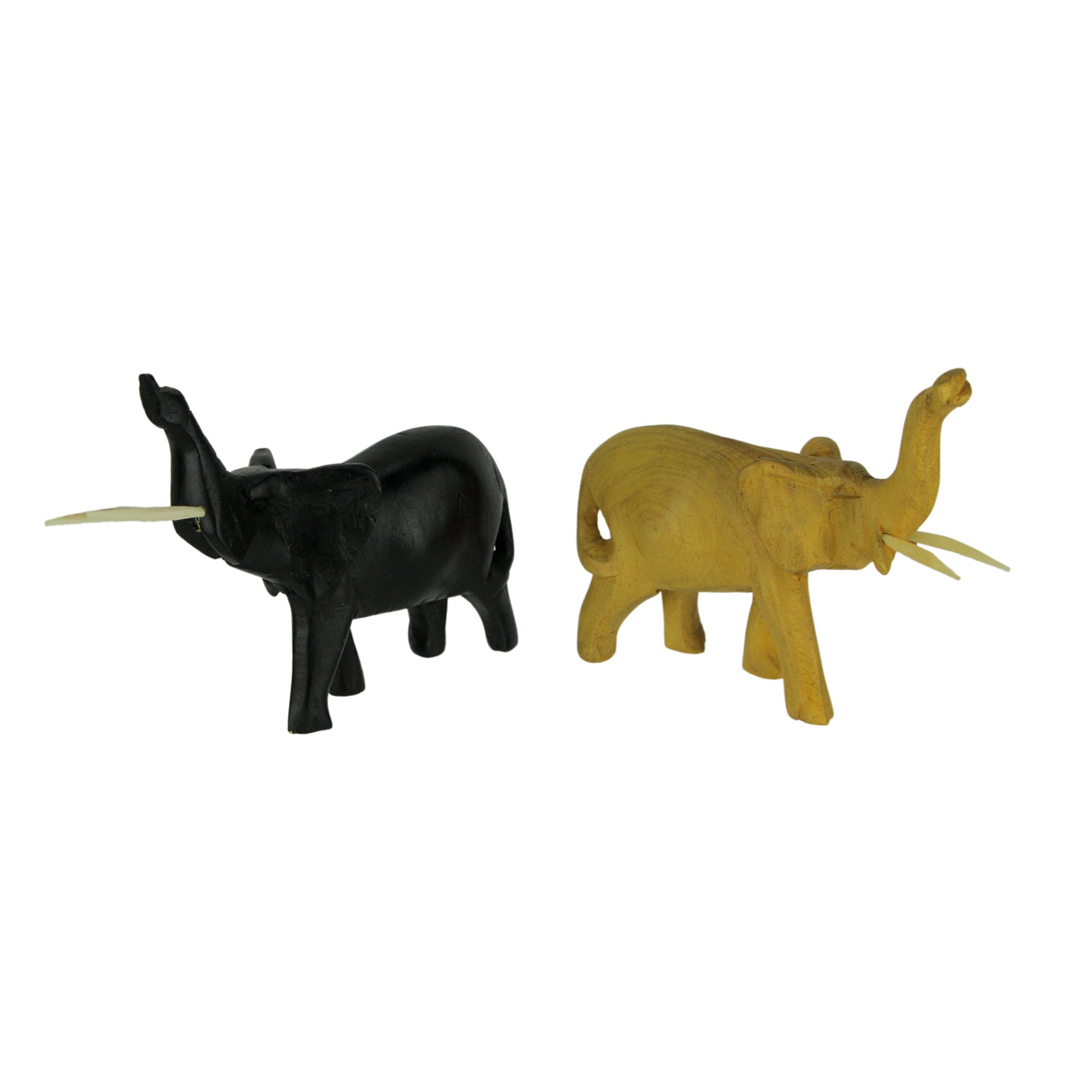 Black And Natural Finish Hand Carved Wood Trumpeting Elephant