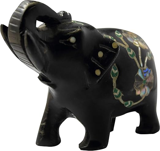 Black Marble Elephant Statue For Home Inlaid With Mother Of Pearl