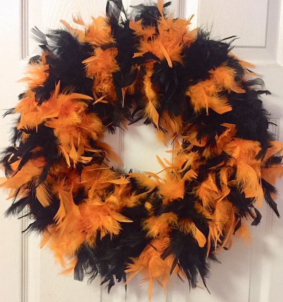 Black Feather Wreath Black Wreath Black And Orange Halloween