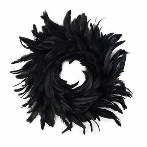 Black Feather Wreath Halloween Feather Wreath Black Feather Etsy