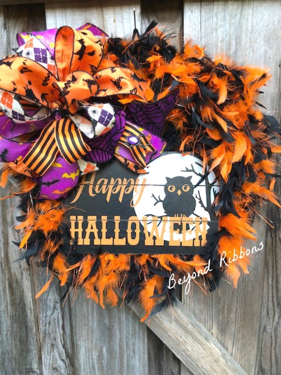 Feather Boa Wreath Halloween Wreath Owl Wreath Feather Etsy