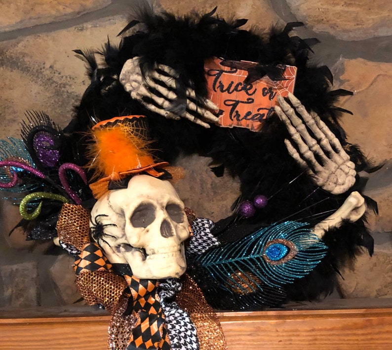Custom Made Fancy Halloween Black Feather Skeleton And Bones Etsy