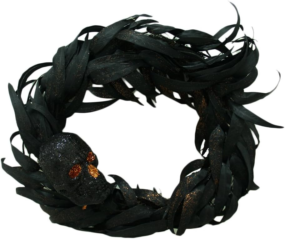 20 Inch Spooky Black Feather Halloween Wreath Hanging Halloween