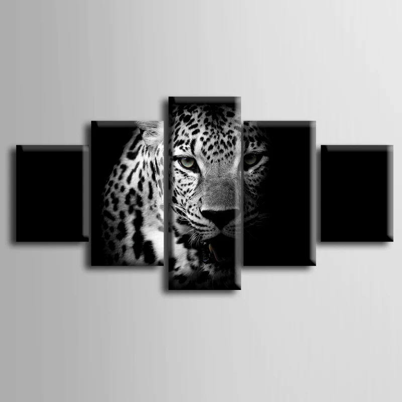 Wholesale 5 Pieces Set Of Black Leopard Series Wall Art For Wall