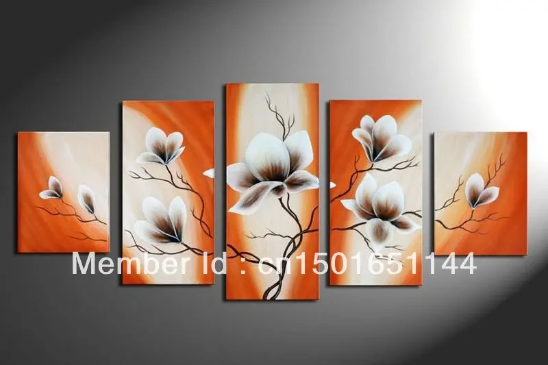 5 Piece Canvas Art Sets Orange Black White Flower Modern Abstract