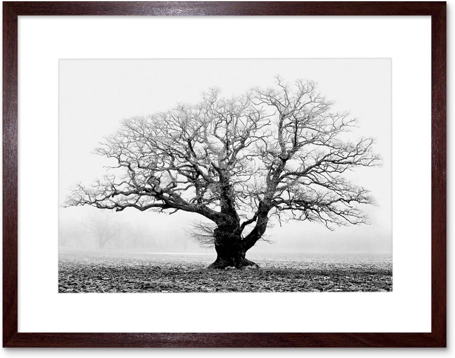 Amazon Com Old Oak Tree Black White Mist Fog Photo Framed Art