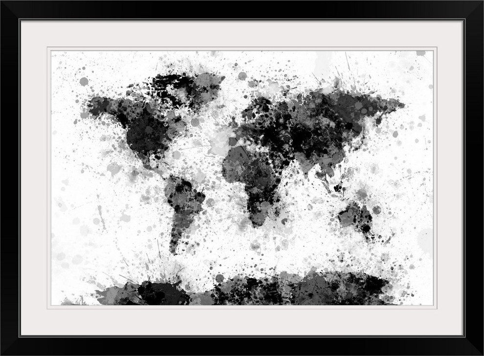 World Map Paint Splashes Black Framed Art Print Contemporary