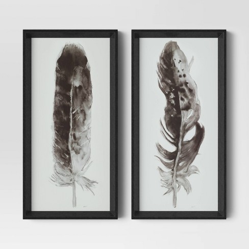Set Of 2 10 X20 Black Framed Print Under Glass Feathers