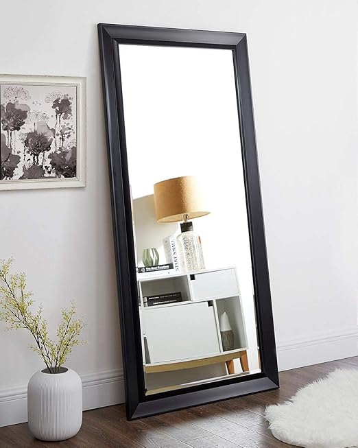 Leaning Mirror Full Length Wall Mounted Large Black Wide Framed