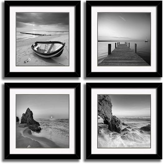 Amazon Com Hlj Art Beach Wall Decor 4 Panels Black And White Theme Landscape Artwork Sea Canvas Prints Contemporary Black Frames Paintings For Home Decorations Black 02 12x12inchx4pcs Posters Prints