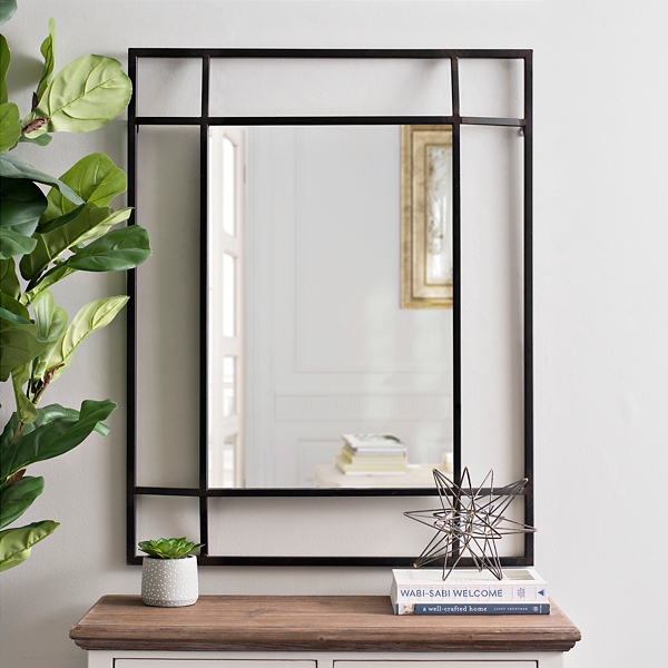 Elegant Wood Frame Black Iron Overlay Wall Mirror Sbc Decor