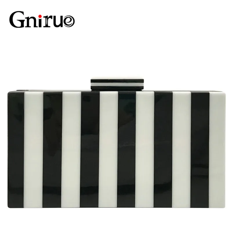 Classic Stripe Clutches Women Acrylic Clutch Fringe Crossbody
