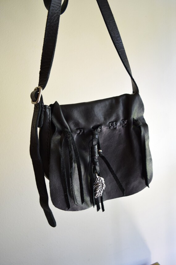 Black Leather Crossbody Boho Fringe Bag From Rusticmoon13 On