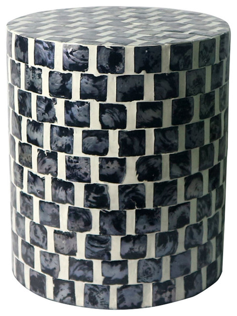 Garden Stool Black White Capiz 14x16 Contemporary Accent And