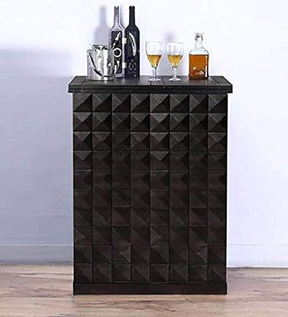 Dark Brown Wooden Liquor Cabi With Doors And Drawers Having Black