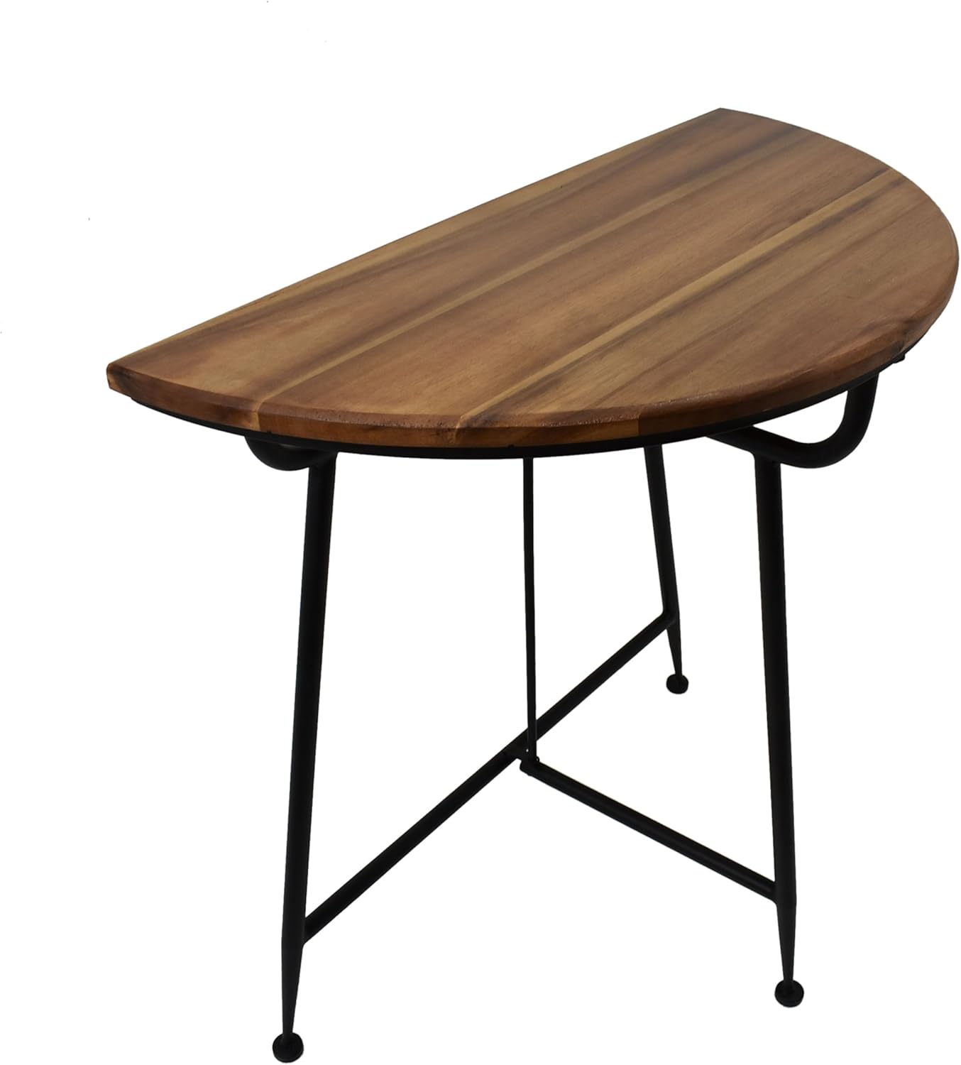 Small Half Round Console Table Iron Solid Wood Top Black Natural