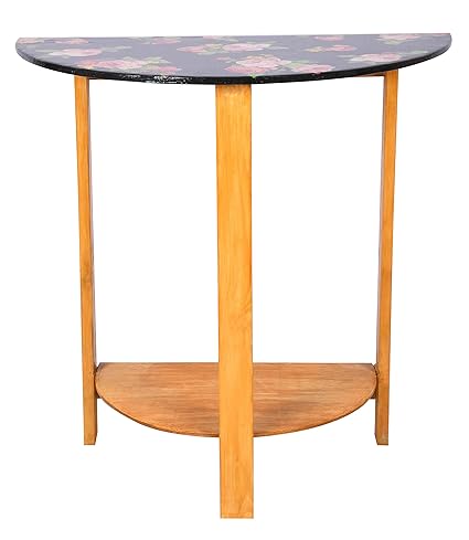 Yaapaai Half Round Table For Side Storage Black With Flower