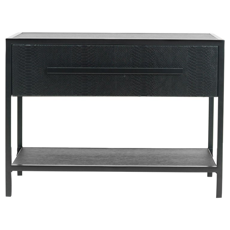 Low Black Metal Bedside Table Contemporary Bedroom