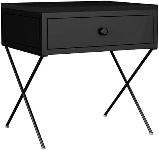Metal Bedside Table With Drawer In Black W 45cm Manufacture