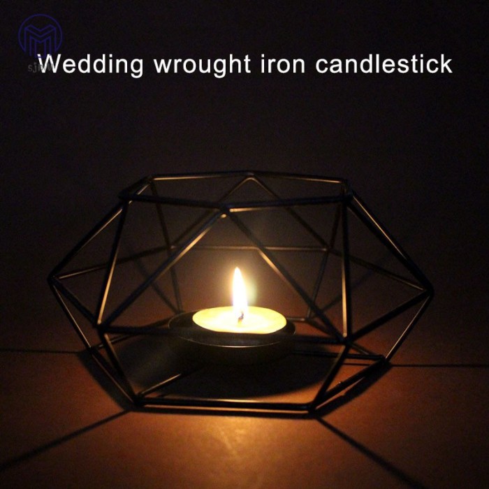 Nordic Style Candle Holder Black Geometric Candlestick Wrought