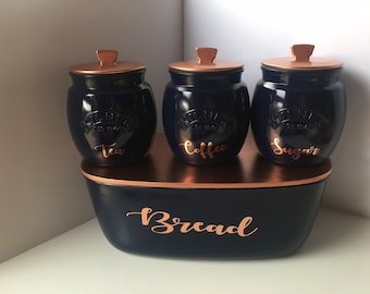 Black Kitchen Storage Set Bread Bin Cookies Butter Tea Sugar